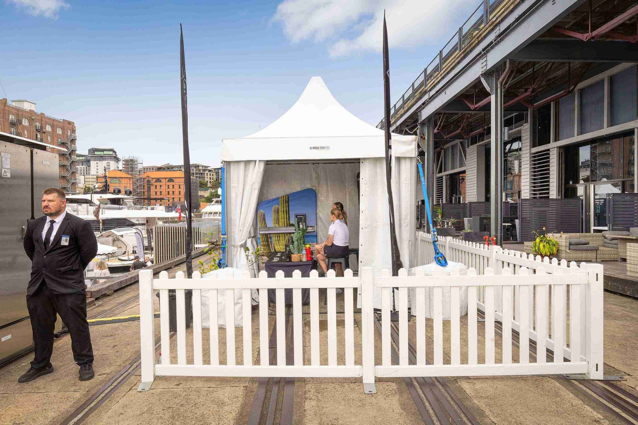 Moreton Hire were the conference suppliers providing event fencing, event equipment, white Pagoda marquee’s, premium furniture packages, custom signage and an iconic blue carpet. Thank you to the team at Superyacht Australia for having us involved in your event in one of Sydney’s most iconic Harbourside locations.