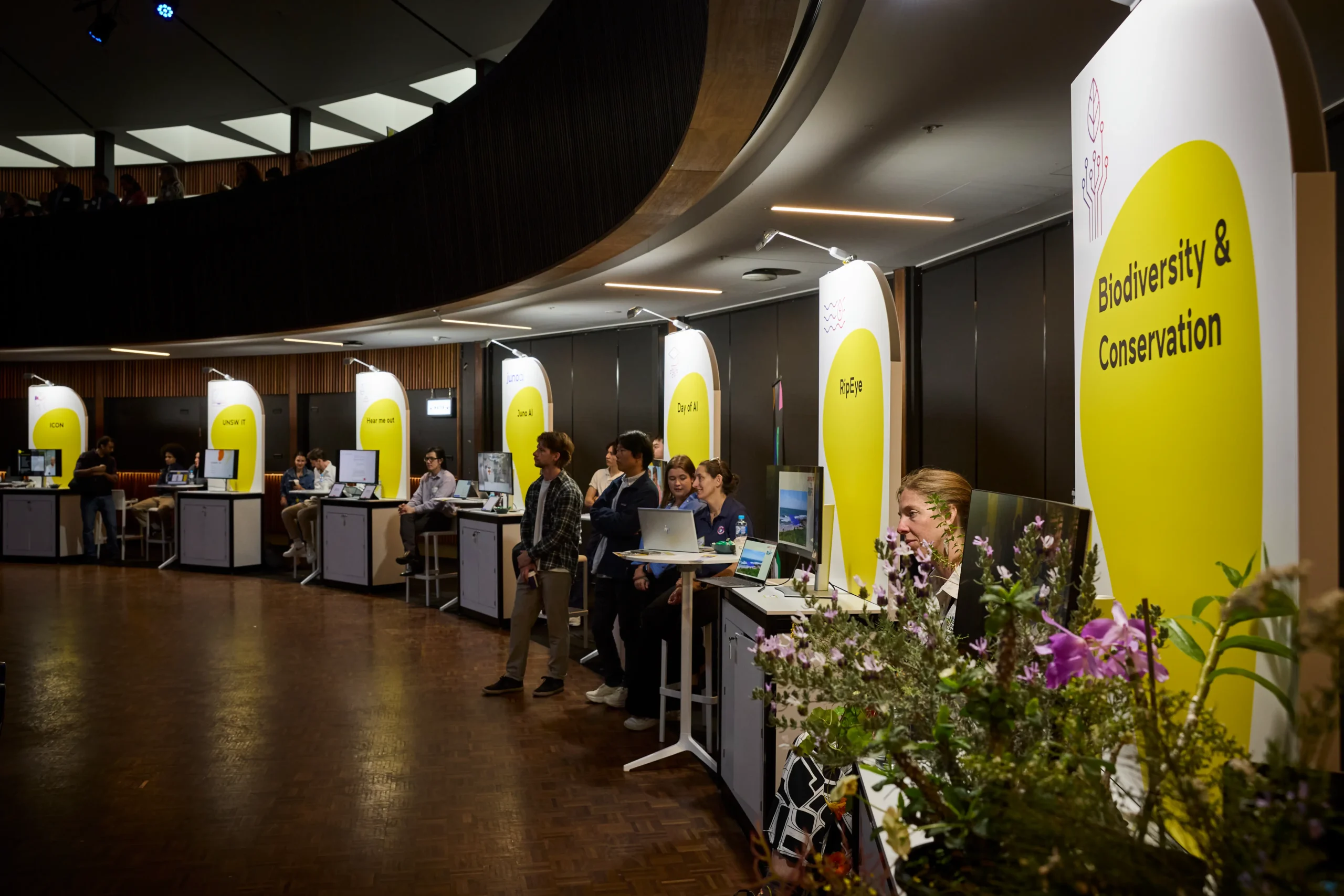 To facilitate a dynamic and engaging environment, Moreton Hire delivered ten custom-designed Impact Kiosks, each paired with a tailored furniture package and bespoke signage. These kiosks served as interactive stations for exhibitors and presenters, enabling clear communication and seamless visitor engagement.